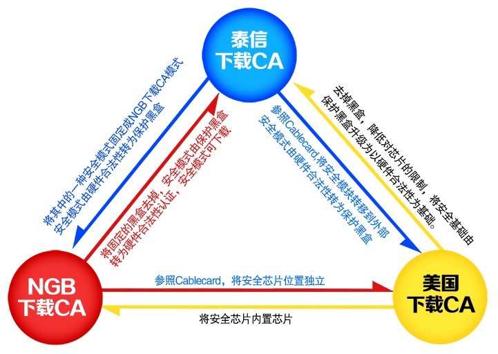 2012年,廣電總局頒布了《NGB可下載CA技術(shù)規(guī)范》,對下載CA進(jìn)行了詳細(xì)的規(guī)范,并不斷對下載CA的實(shí)施進(jìn)行新的嘗試。很多人認(rèn)為,NGB下載CA是泰信在背后推動的結(jié)果,其實(shí)不然(參見《中國下載CA背后的故事(1)》)。