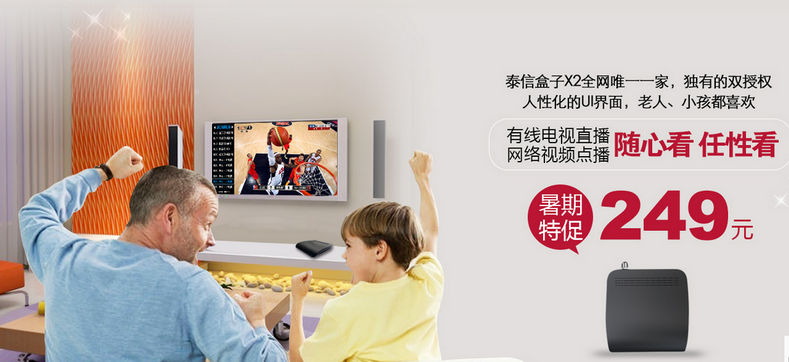 泰信盒子X2采用美國進口專用芯片,主頻高達1.5GHz,更強的解碼,更優的畫質,更快的速度。另外還支持廣電有線電視無線看,即有線電視節目可以傳到手機、PAD上看,打破客廳看電視的限制,隨時隨地看電視,洗衣、做飯也不用擔心錯過精彩節目,更不用擔心卡頓帶來的煩惱。臥室看電視同樣爽,為情侶們打造別樣的多彩二人世界。