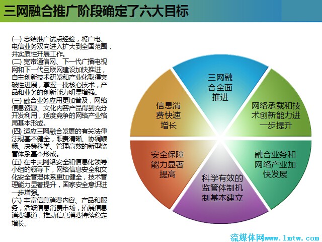 無論是廣電、電信,已經把這個綠燈開了,這個綠燈打開給雙方都機遇,同時壓力也是實實在在擺在面前。再看政策、環境,以及其他保護已經不可能了。這里面就是六大目標里面排在第一位的。