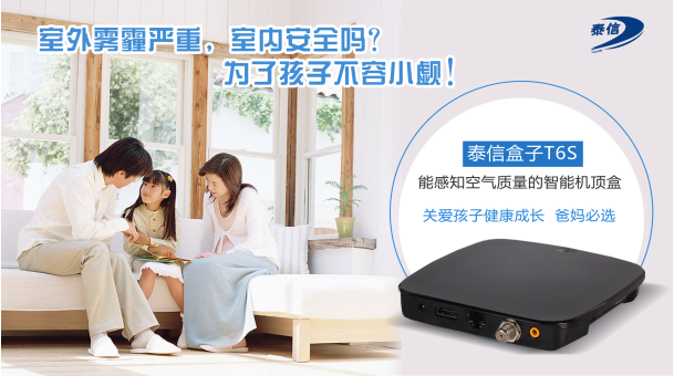 據悉,泰信盒子推出了一款能夠檢測空氣質量的智能機頂盒T6S,省去了花幾百元單獨去買空氣質量檢測儀,讓家庭娛樂生活更健康。其內置低功耗納米陶瓷高靈敏度傳感器,對香煙、木材、紙張燃燒產生的煙霧,酒精、氨氣、氫氣、一氧化碳、甲烷、丙烷、甘烷、苯乙烯、丙二醇、酚、甲苯、乙苯、二甲苯、甲醛等有機揮發氣體具有極高的靈敏度。
