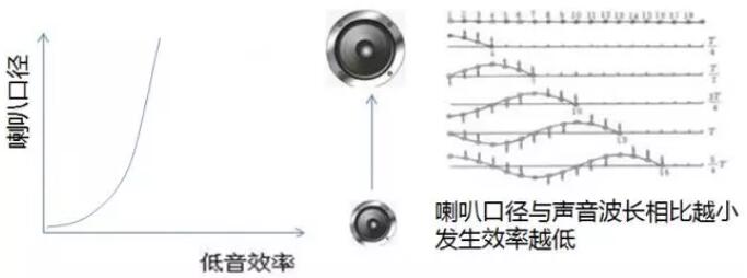 喇叭的發聲效率與聲音波長有關,根據機械波原理,喇叭發出低頻聲音有效的發聲尺寸不能太小。