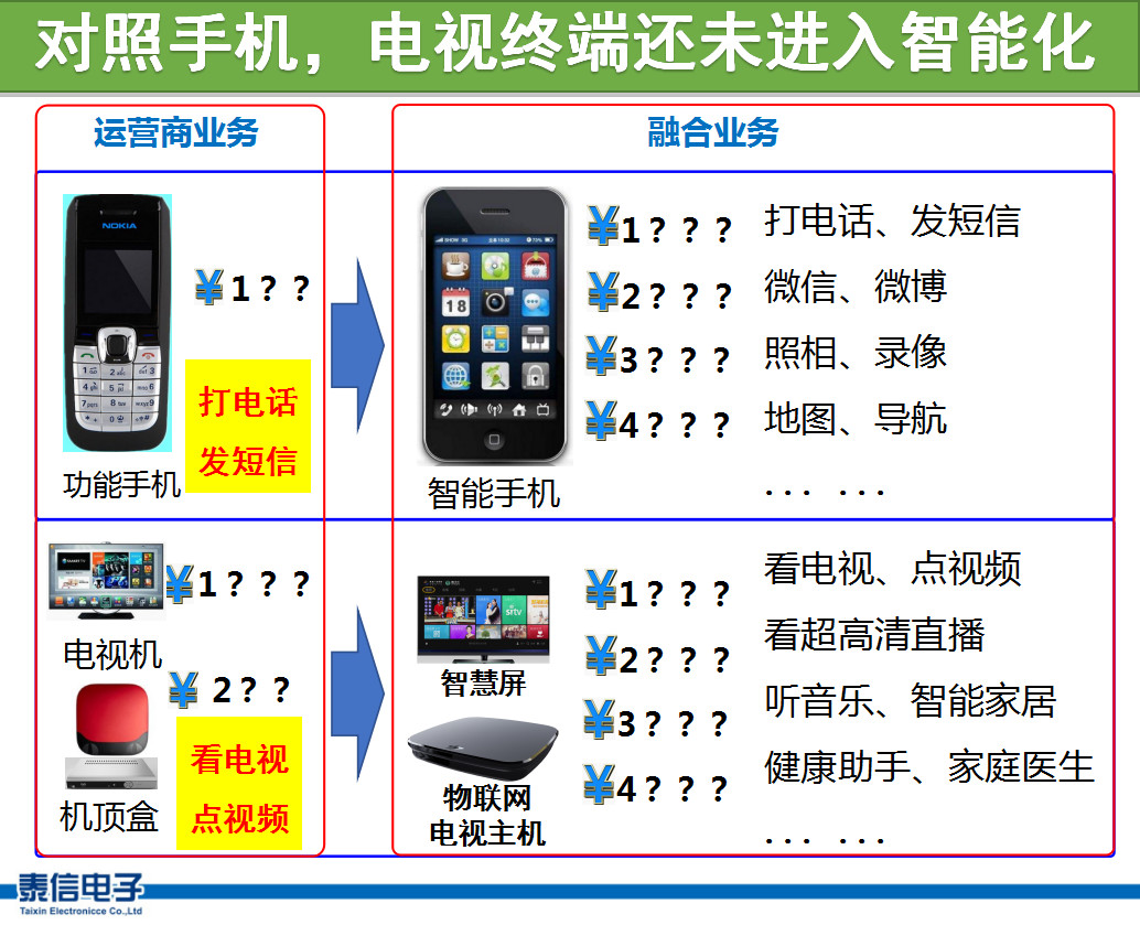 幾乎可以確定,在類似華為“智慧屏”普及之前,大量的功能單一的電視或機頂盒都需要通過物聯網電視主機升級。已經在該領域扎根很久的泰信將借助先發優勢為您提供更好的產品和服務。