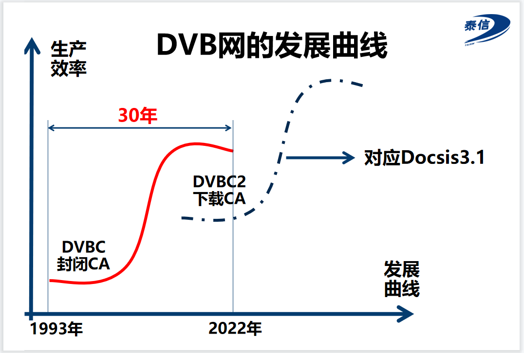 如果在原來的DVBC網上升級DVBC2,與移動通訊從2-4G升級5G一樣,原來的DVBC就好比2-4G。2-4G基站、手機照樣繼續使用。