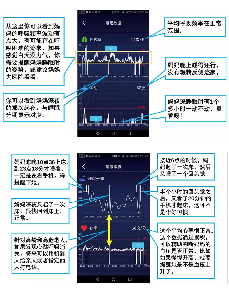 監(jiān)測(cè)睡眠過程中的心率、呼吸率、體動(dòng)等數(shù)據(jù),離床監(jiān)測(cè)器,非穿戴,舒適睡眠無感監(jiān)測(cè)