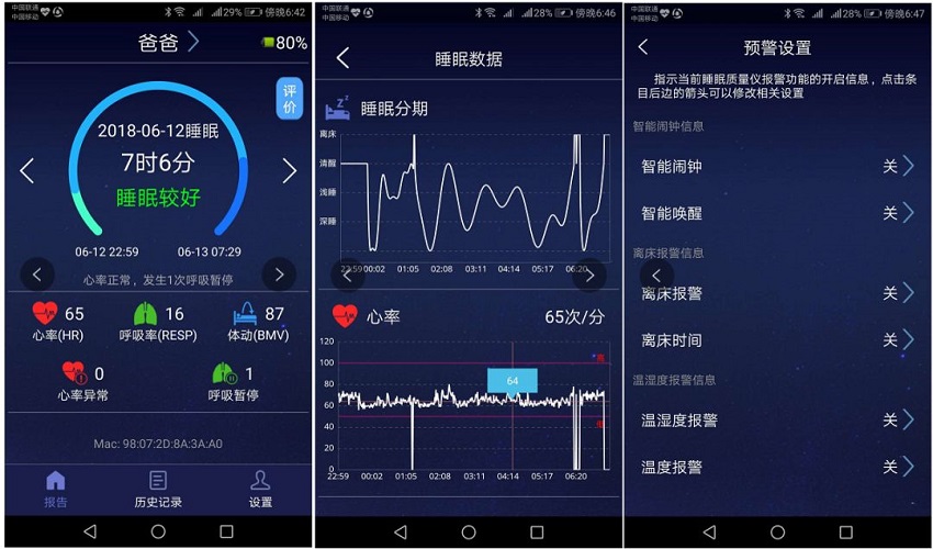 這是一個上班族對媽媽夜晚睡眠數據報告的解讀。借助人工智能,使用傳感器的時間越長,分析的結果就越準確。