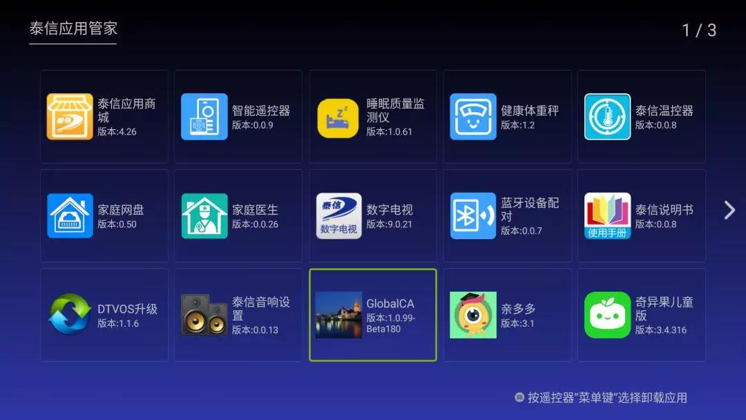 這是泰信機頂盒的底面,有一個智能卡插座,可以把廣電的智能卡插進去,但有的加密應用需要更換。具體方法是,在泰信應用管家中,找到ClobalCA軟件: