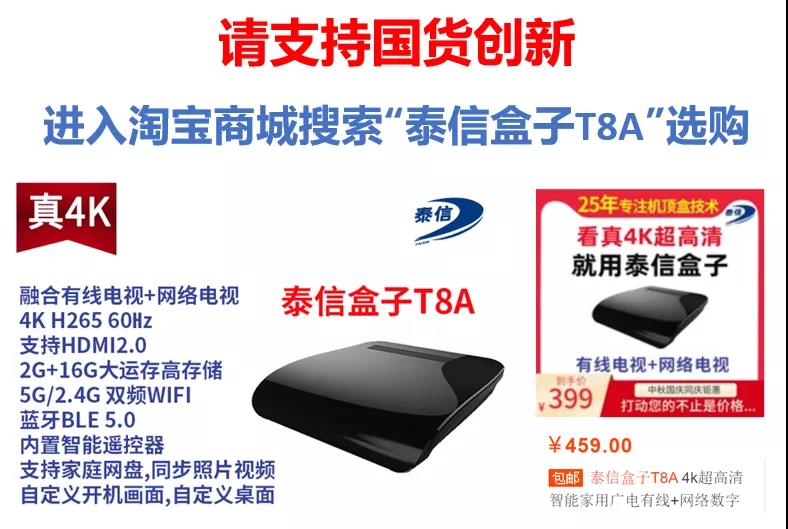 采用下載CA技術的泰信機頂盒在市場上獨立銷售,并且全國通用。可在淘寶網、拼多多、微信公眾號中搜索“泰信盒子”即可找到也可官網直接購買。